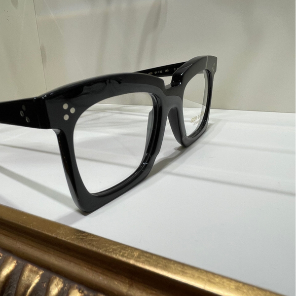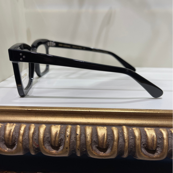 Occhiale da donna in raffinata celluloide nera, con montatura artigianale e lenti a forma quadrata morbida. Eleganza senza tempo e qualità esclusiva, perfetto per uno stile sofisticato.